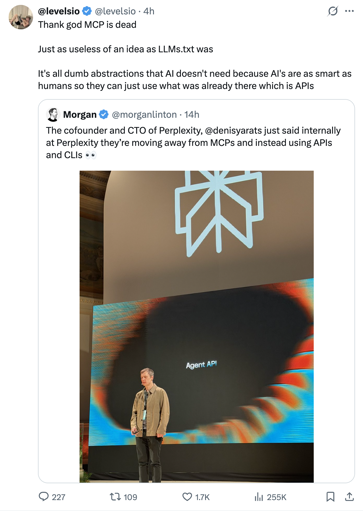 eifachposteMB to AI (Reddit RSS)English · 2 days agowill MCP be dead soon?i.redd.itimagemessage-square0linkfedilinkarrow-up11file-text