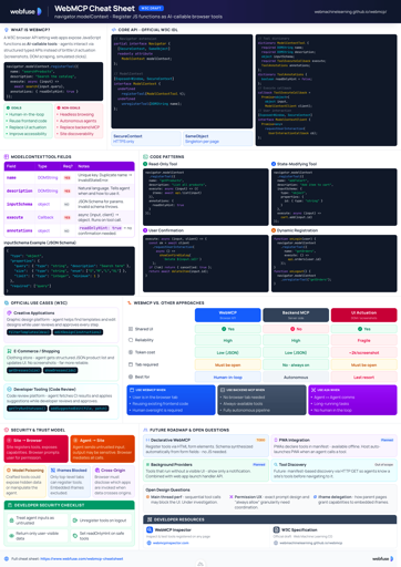 eifachposteMB to AI (Reddit RSS)English · 23 hours agoWebMCP Cheatsheeti.redd.itimagemessage-square0linkfedilinkarrow-up11file-text