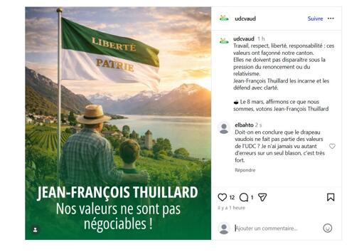 eifachposteMB to Swiss Stuff (Reddit RSS Feed) · 21 days agoOn Instagram UDC vaud says their "values are non-negotiable" while posting a flag from canton de Vaud with at least 4 mistakes (the most blatant ones being the switching of colors and the modificationi.redd.itimagemessage-square0linkfedilinkarrow-up11file-text