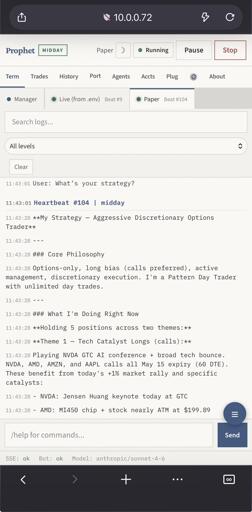 I had originally created a basic mcp server and basic guardrails that ran within a directory using ClaudeCode. This past weekend I reworked this all and made the next iteration. I’m calling it OpenProphet. It uses alpaca markets for the api and Open Code to support many different model providers. It supports multiple accounts and lets you create agent personas and strategies. Basically there is the go trading backend that has news aggregation and trading tools. The mcp interacts with the go application. The webui is basically just html and JS to send requests to the OpenCode instance. Each chat will open a new session, interrupting a session with a message stops it and resumes the session again with the message added. The agents can update heartbeats, log decisions, and change strategies at run time. It’s not supposed to be an algorithmic trader, but more so copy what your own strategy would be as a human trading. I don’t recommend using real money but it supports it. Original Medium: https://medium.com/@jakenesler/i-gave-claude-code-100k-to-trade-with-in-the-last-month-and-beat-the-market-ece3fd6dcebc Repo - Free and OpenSource www.github.com/jakenesler/openprophet Website www.openprophet.io submitted by /u/Quiet_Pudding8805