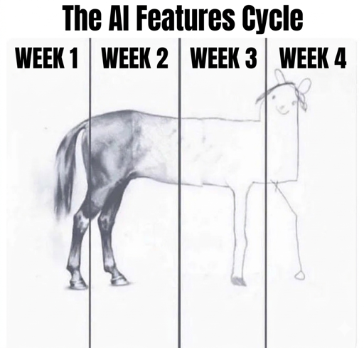 The meme is real! Nothing captures it better, pay attention: Every new announcement follows the same script: first comes the showcase. Week one: is pure exuberance (VEO 3 generating two elderly men speaking in portuguese at the top of Everest, nano banana editing images so convincingly that ppl talk about photoshop’s death, GPT-5.4 picking up on subtle context, etc). Then week two hits: the model that seemed to understand you starts answering stuffed with em dashes, videos turn into surrealist art that ignores the prompt. The companies don’t respond, they don’t have to. They simply announce more features (music maker?) feed the hype, and the cycle resets with a new week of exuberance that will be real, will be impressive, and will last exactly as long as it always does. submitted by /u/GreenBird-ee