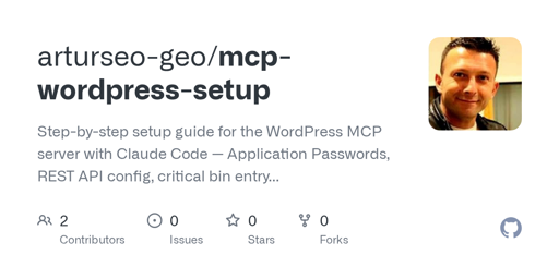 eifachposteMB to AI (Reddit RSS)English · 8 hours agoStep-by-step setup guide for the WordPress MCP server with Claude Code — Application Passwords, REST API config, critical bin entry point bug workaround (v3.1.13), and verified .mcp.json configurationgithub.comexternal-linkmessage-square0linkfedilinkarrow-up11file-text