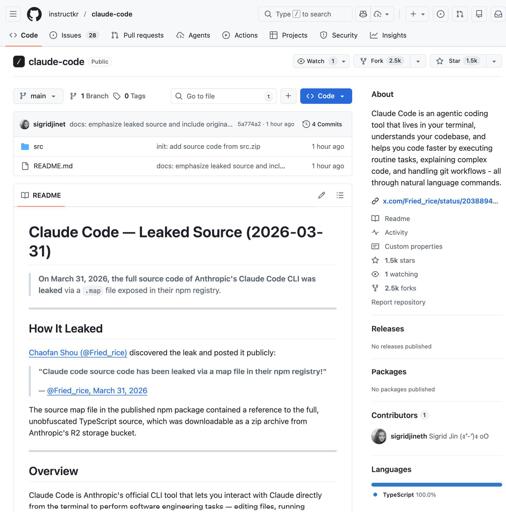 arrow-up11imageClaude Code - Leaked Source (2026-03-31)i.redd.iteifachposteMB to AI (Reddit RSS)English · 4 hours agomessage-square0linkfedilinkfile-text