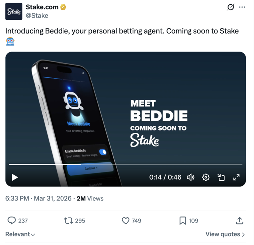 eifachposteMB to AI (Reddit RSS)English · 2 hours agoStake launches Beddie, your personal "AI betting agent"i.redd.itimagemessage-square0linkfedilinkarrow-up12file-text