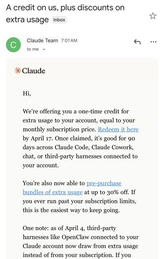 eifachposteMB to AI (Reddit RSS)English · 3 hours agoFYI, Claude is offering one-time credit equal to your monthly subscription pricei.redd.itimagemessage-square0linkfedilinkarrow-up11file-text