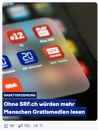 arrow-up11imageEher "Ohne SRF.ch würden mehr Menschen nur noch werbegetriebenen Clickbait lesen" - Die Höde reged mi uf ehrlichi.redd.iteifachposteMB to Swiss Stuff (Reddit RSS Feed) · 2 hours agomessage-square0linkfedilinkfile-text