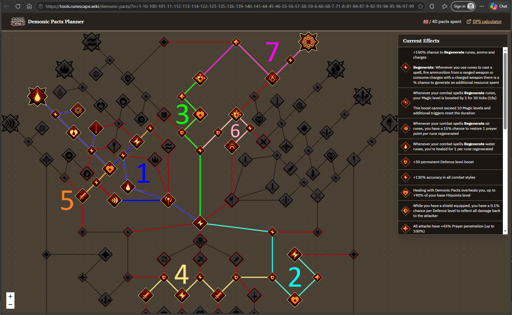https://tools.runescape.wiki/demonic-pacts/?n=1-10-100-101-11-112-113-114-122-123-135-136-139-140-141-44-45-46-55-56-57-58-59-6-60-68-7-71-8-81-84-87-9-92-93-94-95-96-97-99 Did you know that by staying sufficiently hydrated, you can have unlimited hp, prayer, and wealth? Hello again from the future, where Jagex has unveiled that we have a whopping 40 points to spend on this constellation of buffs. In light of this and other new info, I’ve revised my previous build to allocate the extra points as well as include a suggested unlock order. Full build effects: 150% chance to Regenerate runes, ammo, and charges Whenever your combat spells Regenerate runes, your Magic level is boosted by 1 for 18s. This boost cannot exceed 10 Magic levels and additional triggers reset the duration Whenever your combat spells Regenerate air runes, you have a 15% chance to restore 1 prayer point per rune regenerated Whenever your combat spells Regenerate water runes, you’re healed for 1 per rune regenerated Healing with Demonic Pacts overheals you up to 90% of your base Hitpoints level Water spell hits bounce back to you, healing you for the 60% of the damage dealt to your target Water spells deal increased damage the higher health percentage you have (+20% damage at 100% health) Ice spells now count as ‘water’ spells Attack rate with combat spells in a spellbook is sped up by 2 ticks All attacks have 45% Prayer penetration You have a 5% chance per attack in any style to roll max accuracy, this is increased by 5% for each tile distance between you and your target +130% accuracy in all combat styles +2% Magic damage +1% Melee damage +30 permanent Defence level boost Whenever an attack deals 0 damage to you while either a two-handed shield or an off-hand is equipped, you’re healed for 2 and restore 2 prayer points While you have a shield equipped, you have a 0.1% chance per Defence level to reflect all damage back to the attacker While you have a shield equipped you gain the Thorns effect: Whenever you’re attacked enemies will be instantly hit with 3 melee damage. This effect can only trigger once per hit-splat and will trigger if you take 0 damage. Other pacts will specify if they effect Thorns All recoil & Thorns style effects deal additional damage equal to 1% of your total defence bonuses When the Thorns effect triggers, it will always hit twice, dealing 50% of its damage in the second hit TLDR Ice Barrage generates 50% free runes instead of spending them, basically doesn’t miss, penetrates prayer, casts every third tick, heals for 9+60% of damage, can overheal to 190hp, and deals 36% extra damage fully overhealed. Water Surge also does all that, plus heals an extra 6hp, restores 1.575 prayer, and can be cast even faster (every other tick) with the Harmonized Nightmare Staff Additionally, damage has a 13% chance to be reflected to enemies, they receive 6+ recoil damage per attack, and a 0 on you will restore 2hp & prayer. Note that the reflect & recoil effects require a shield to be equipped, so plan equipment accordingly if following this strictly to the end! submitted by /u/turn-based-games