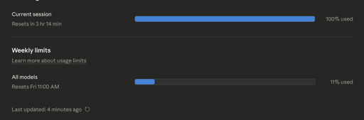 I had Sonnet outline the design for a plugin and then asked Opus to turn that into an implementation plan. About 3% was used for the Sonnet design and Opus used 97% of my 5h limit on making a plan. Pretty terrible in and of itself but the issue is I am apparently now out of my entire usage for the week (the Fri it is referring to there is Fri 20th), despite only being on 11% for “All models” both in desktop app and web app interface. I’ve been moaning about usage limits for a while but this really is getting to the point where it actually feels like theft/false advertisement. Is this a bug or what? submitted by /u/LaCaipirinha