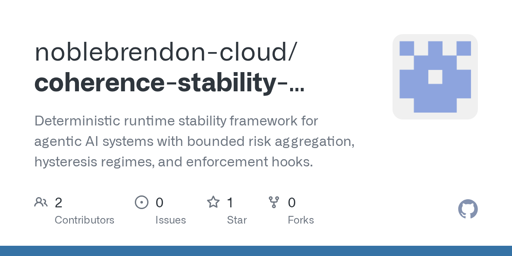 ​ Body: Most agent systems focus on capability. Very few focus on stability under acceleration. I just open-sourced something I’ve been building: Coherence Stability Kernel (v1.0) MIT licensed. It’s a runtime stability framework for agentic systems that: Monitors five bounded risk signals (normalized 0–1) Aggregates them into a composite risk metric Computes coherence as C = 1 - risk Measures escalation as acceleration vs recovery capacity Enforces regime-based operational limits Core idea: Stability isn’t a prompt problem. It’s a telemetry + regime enforcement problem. Instead of: “Is the output aligned?” It asks: “Is the system accelerating faster than it can recover?” The kernel is deterministic: Replayable behavior Explicit risk normalization Hard regime transitions (normal → elevated → constrained) It’s intentionally: Clinical Governance-oriented Not hype-driven Designed for agent stacks that already exist Repo: https://github.com/noblebrendon-cloud/coherence-stability-kernel� Would appreciate critique on: The composite metric formulation Escalation ratio math Regime enforcement thresholds Failure modes I may be missing This isn’t meant to be flashy. It’s meant to survive pressure. Curious how others are handling runtime stability in autonomous or semi-autonomous systems. submitted by /u/EcstaticAd9869