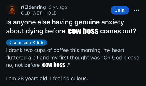 eifachposteMB to OSRS (Reddit RSS Feeds)English · 10 days agocow boss in 9 daysi.redd.itimagemessage-square0linkfedilinkarrow-up11file-text