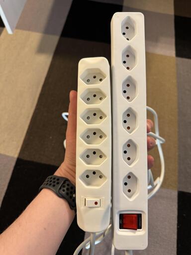 In Switzerland, you buy all the socket strips twice. First one with right amount of sockets, and then the second one to actually fit all the devices.