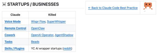 I'm curating a list of startups/products that Claude Code killed by shipping their features natively